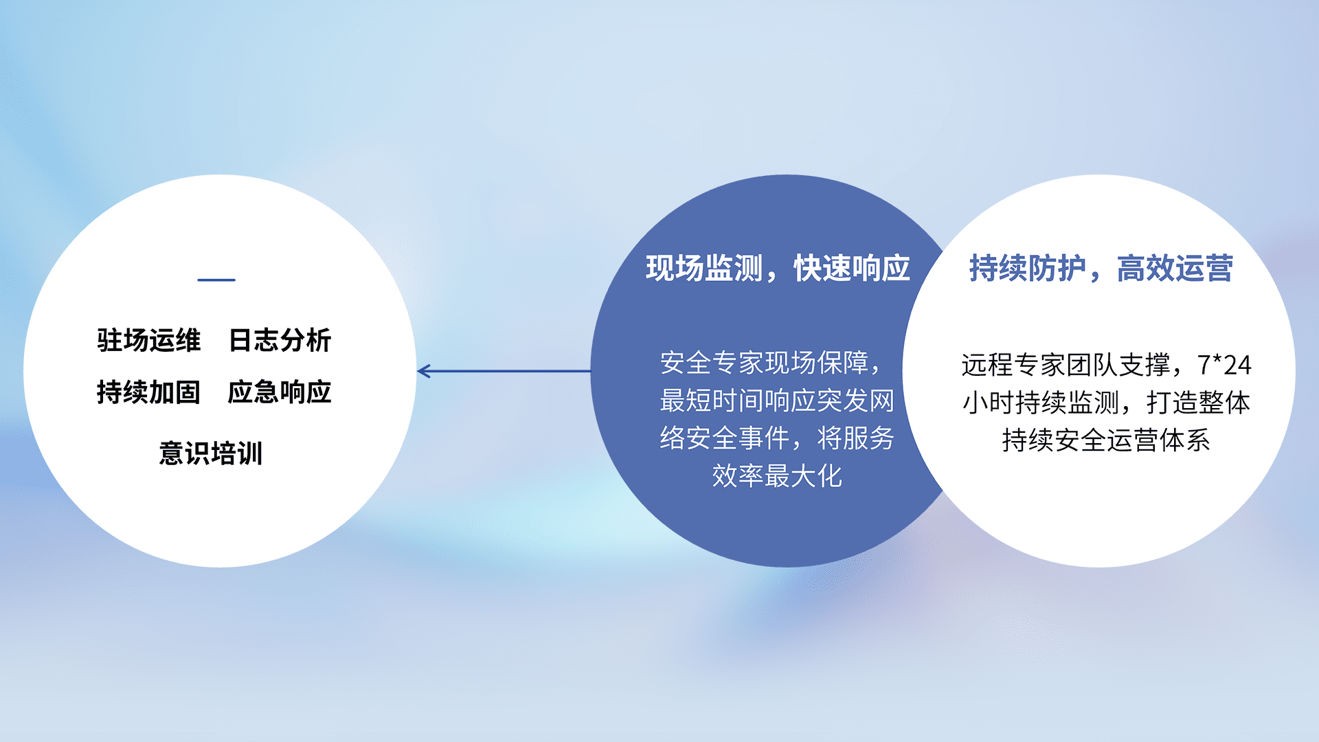 7X24小时持续监测安全事件,保持安全策略有效性,降低资产脆弱性风险,,精准拦截黑客攻击,,,,减少被黑客利用的机会,,第一时间遏制,,,降低损失。。。。